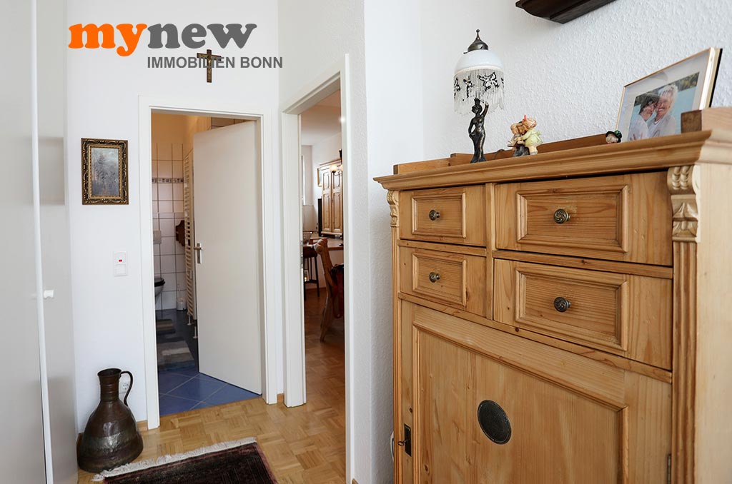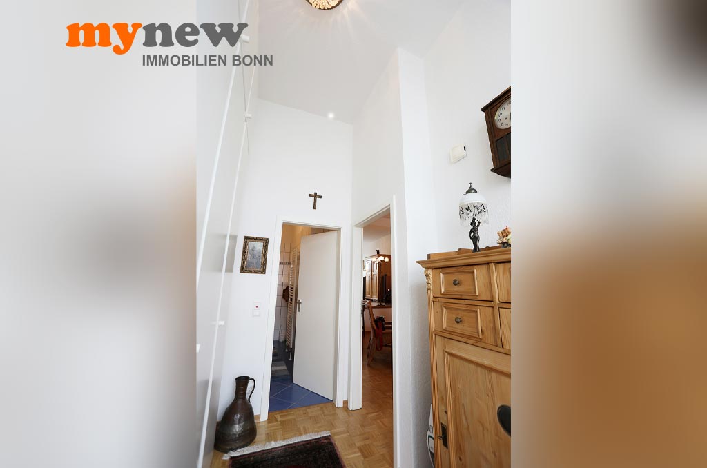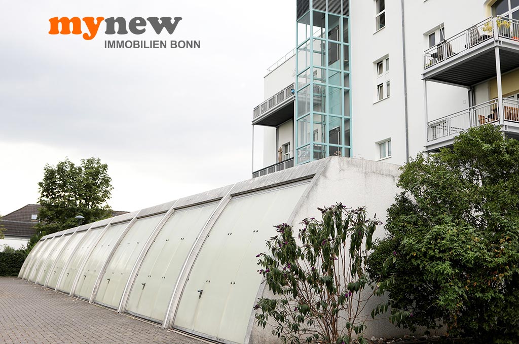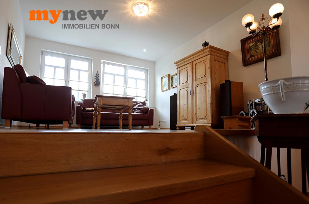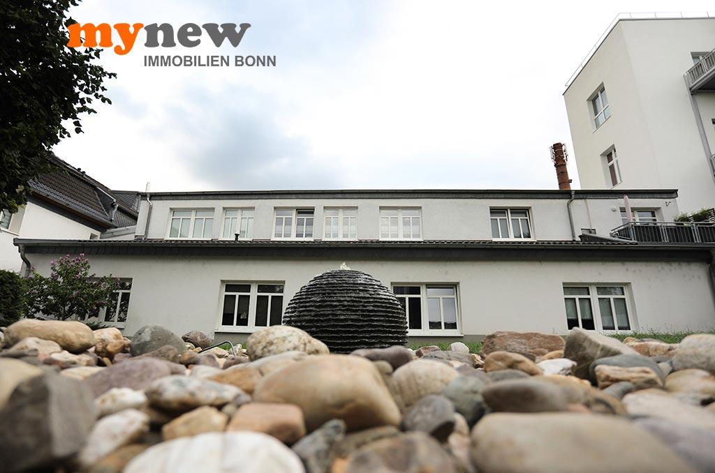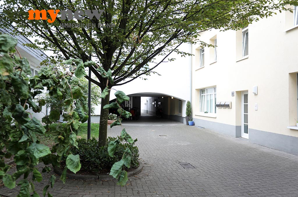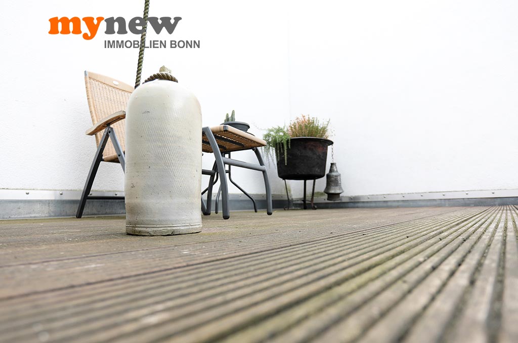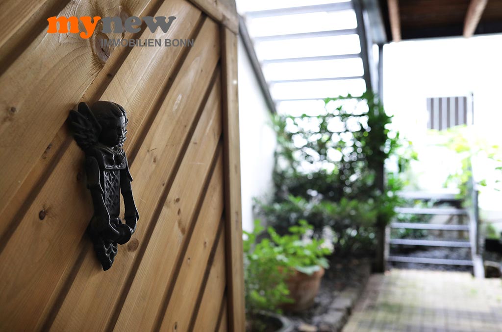 Diese ungewöhnliche Zweizimmerwohnung befindet sich im Komplex der im Jahr 2000 revitalisierten Germania Brauerei im Herzen von Bornheim-Hersel. Versteckt mitten in der verwinkelten Liegenschaft, welche Moderne mit altem Industrieflair verbindet, findet sich diese ganz besondere Eigentumswohnung. Gleich nach dem Zugang über eine Holz-Gartentür ist man irgendwie im Urlaubsmodus. Alles wirkt gleich einladend, so wie ein mediterraner Hinterhof, mit viel Liebe zum Detail. Der Bereich bietet viel wertvolle Nutzfläche für viele Zwecke. Im Zweifel steht hier einfach das Fahrrad sicher, oder man nutzt den Platz zum Grillen. Von hier aus führt dann eine Treppe nach oben über die Terrasse zur Wohnungstür. Durch den eigenen Zugang hat man eher ein ‚eigenes Reich-Gefühl‘, als bei einem typischen Mehrfamilienhaus. Wenn man will, wird man hier kaum gefunden und genießt eine herrliche Privatsphäre.