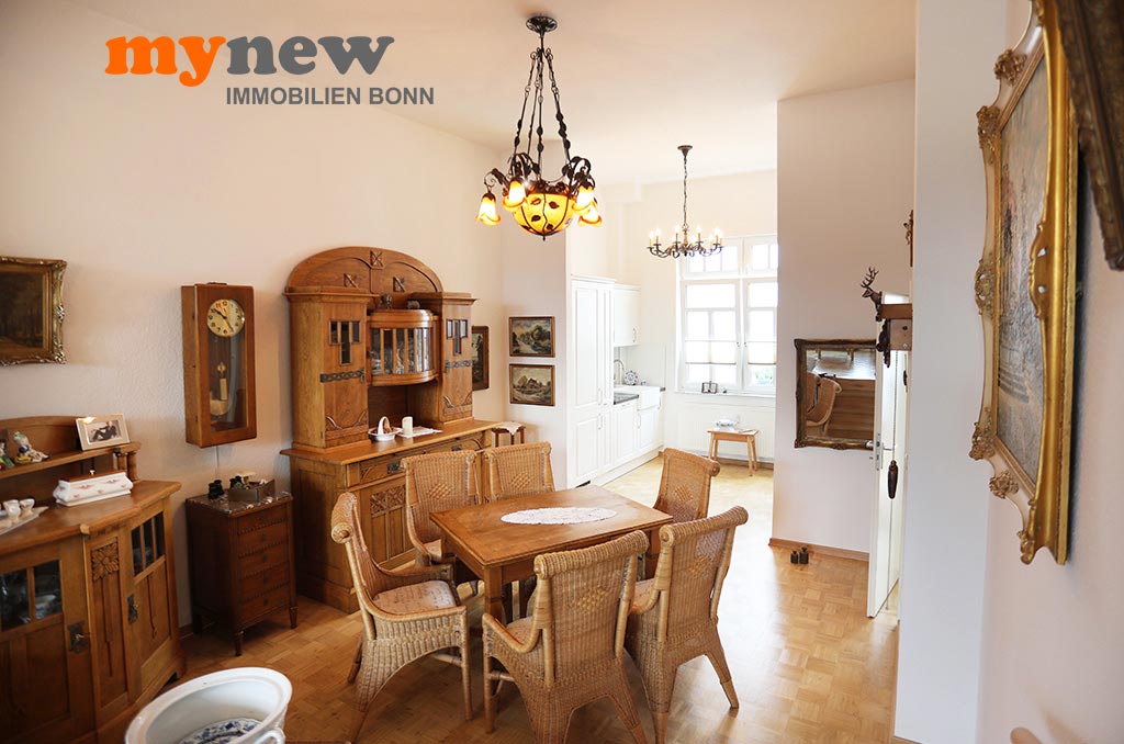 Die Wohnung selber beginnt im Eingangsbereich mit einer lichtdurchfluteten Diele mit hochwertigen Einbauschränken vom Schreiner, welche selbstverständlich verbleiben. Die Deckenhöhe von drei Metern gibt schon im Entree der Wohnung ein Gefühl der Großzügigkeit. Geradeaus findet sich das Bad und nach rechts führt die Diele ins Wohn-Esszimmer mit offener Küche. Dieses beginnt mit dem Essbereich und gibt wegen der Stufen zum Wohnbereich ein ganz besonderes Raumgefühl. Die Küche aus Ende 2018 ist fast unbenutzt (Neupreis 7.500EUR) und im Kaufpreis enthalten. Der hochwertige Bodenbelag (Parkett) ist frisch abgeschliffen und die Wohnung renoviert, so dass das Bild einem Erstbezug gleicht. Vom Wohnbereich aus gelangen Sie dann abschließend in das Schlafzimmer. Demnach die perfekte Wohnung für Singles, oder Paare, die eine Wohnung mit besonderem Charme suchen. Hier werden Sie fündig!